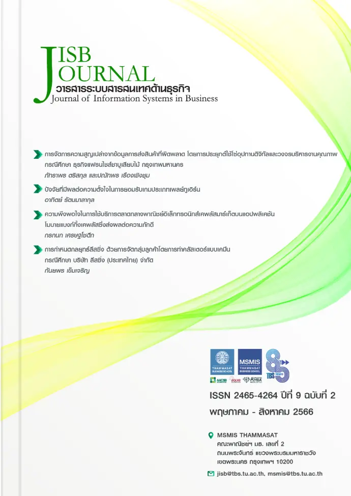 การจัดการความสูญเปล่าจากข้อมูลการส่งสินค้าที่ผิดพลาด โดยการประยุกต์ใช้โซ่อุปทานดิจิทัลและวงจรบริหารงานคุณภาพ กรณีศึกษา ธุรกิจแฟรนไชส์ชาบูเสียบไม้ กรุงเทพมหานคร